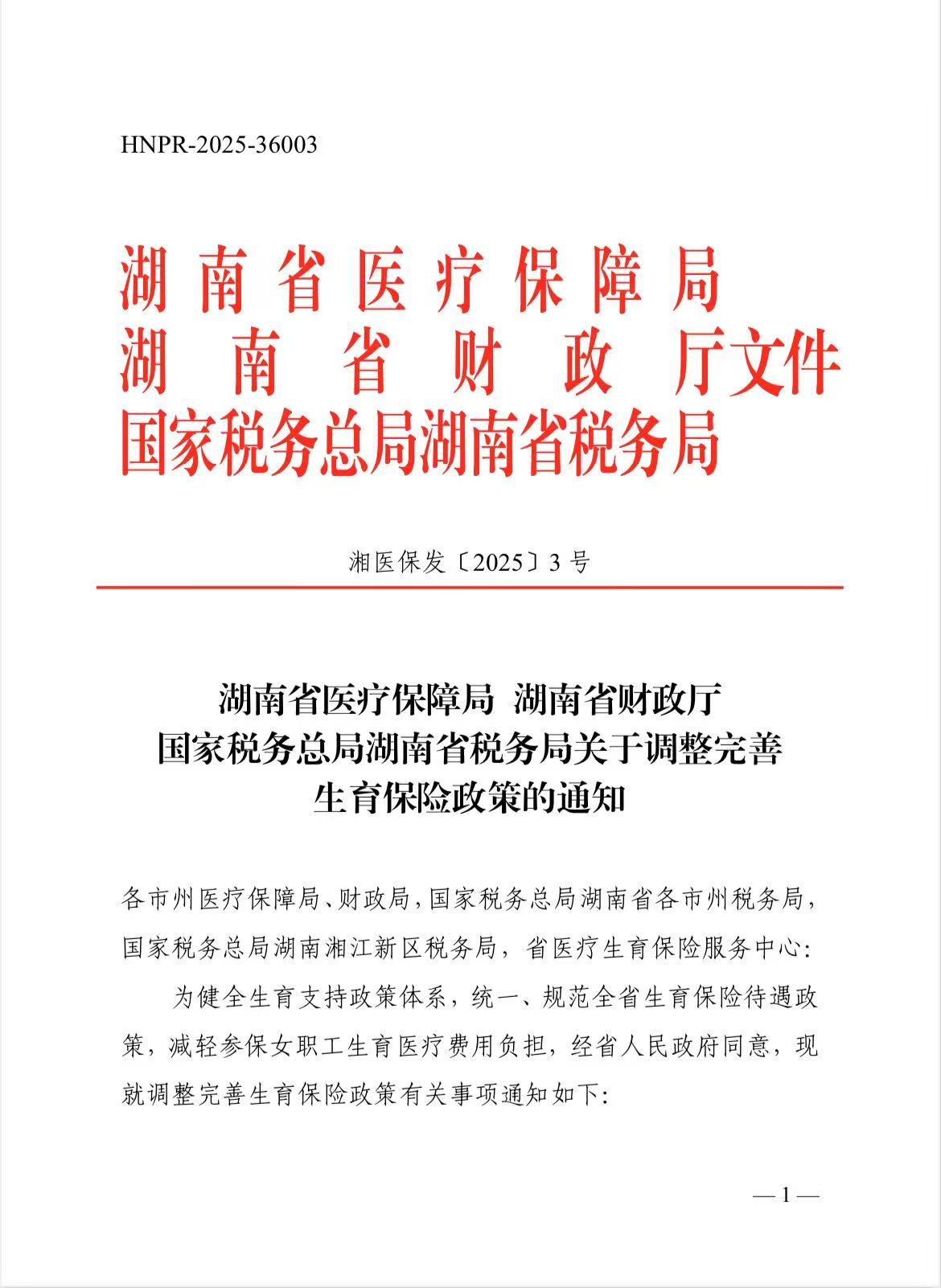 湖南省医疗保障局 湖南省财政厅 国家税务总局湖南省税务局关于调整完善生育保险政策的通知